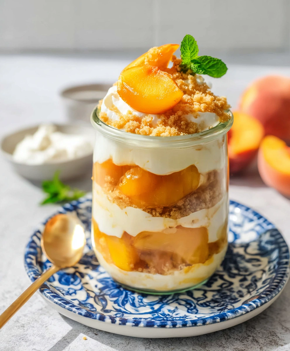Magnolia Bakery Peach Crisp Pudding is a creamy, layered no-bake dessert that combines fresh peaches with vanilla pudding, whipped cream, crunchy Nilla wafers, and a buttery cinnamon-sugar crumble topping. It’s like peach trifle inspired by Magnolia Bakery’s famous banana pudding but bursting with seasonal peach flavor — perfect for summer dessert.