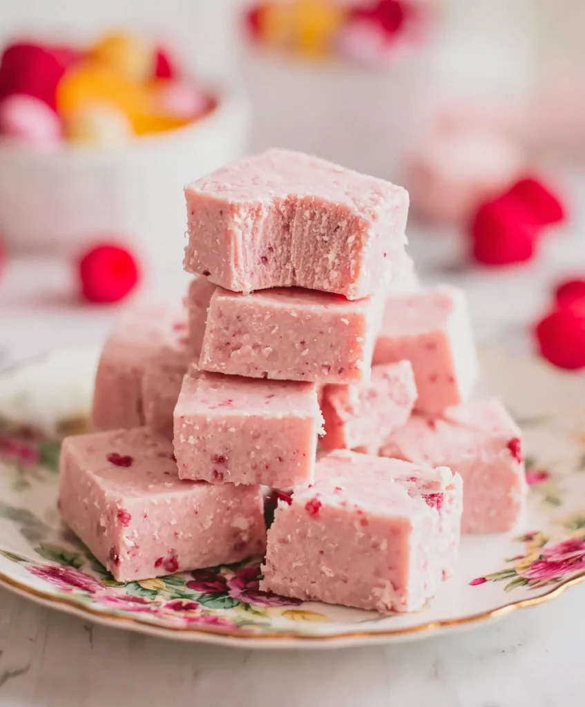 The balance between coconut richness and raspberry freshness makes this fudge light yet satisfying.